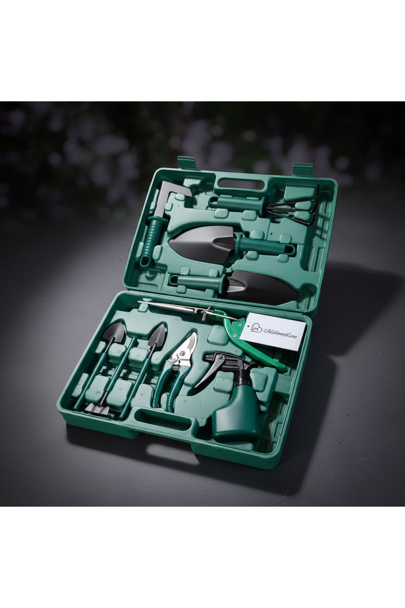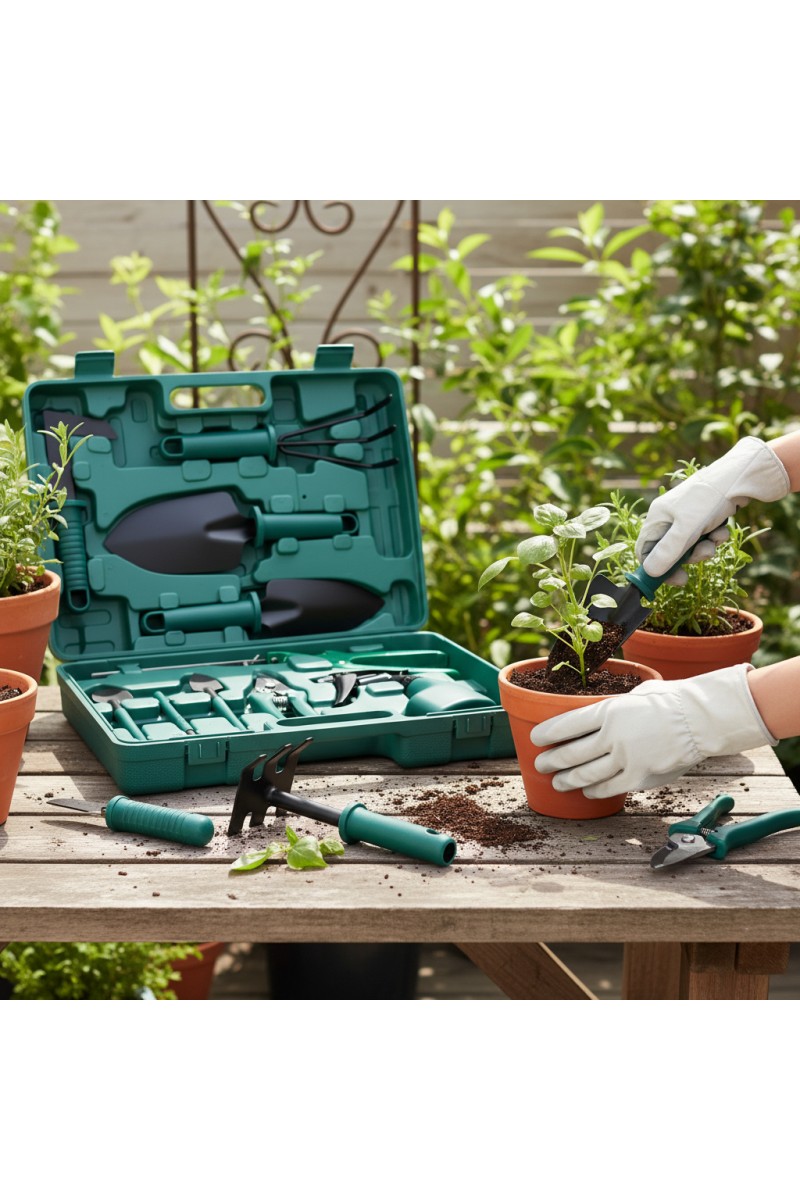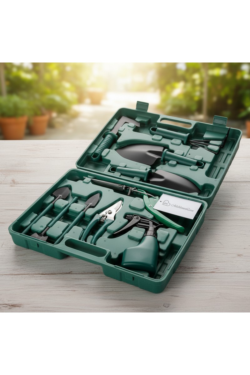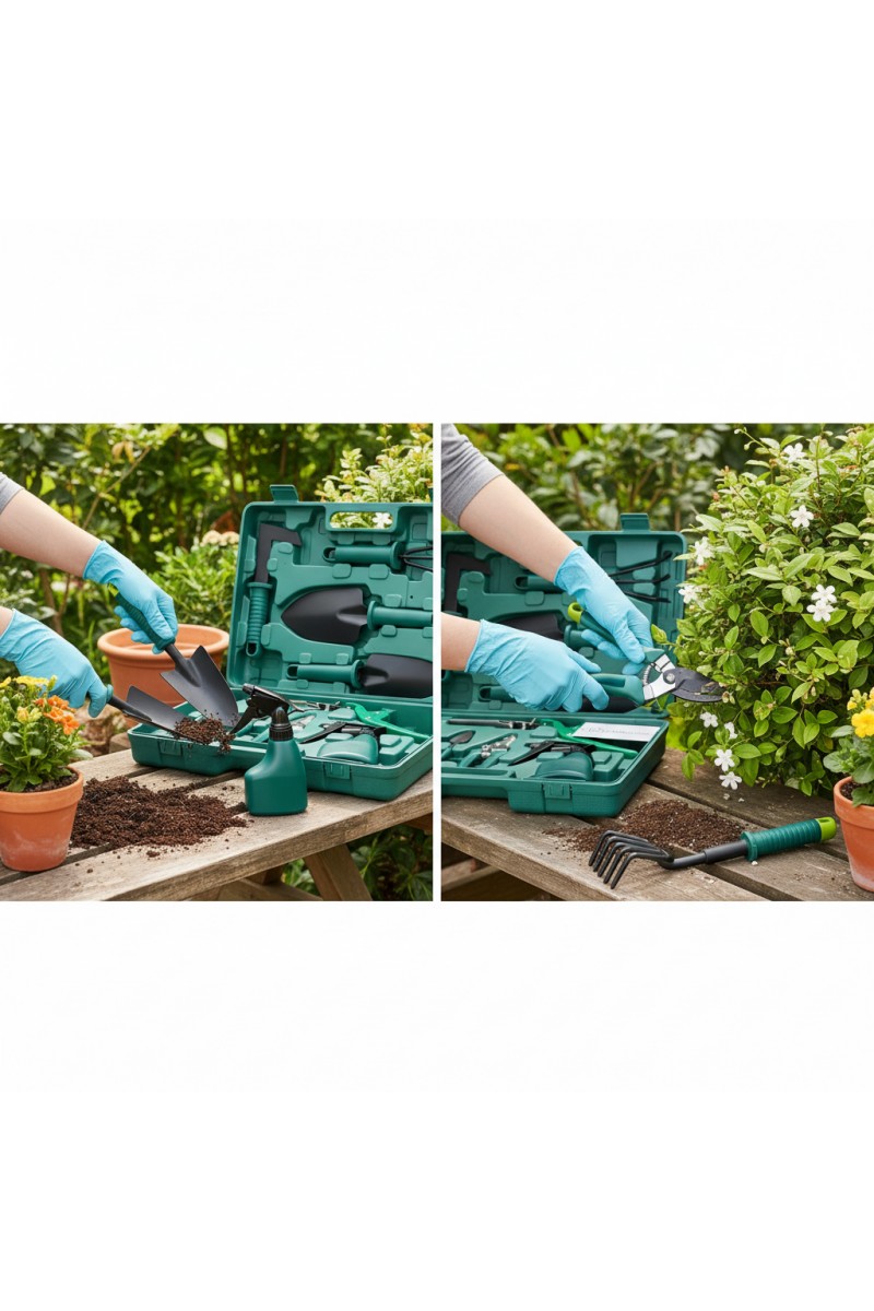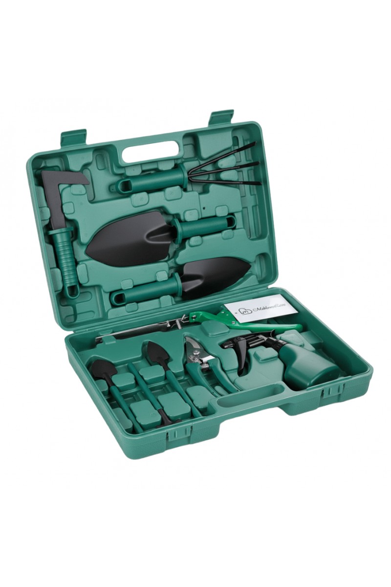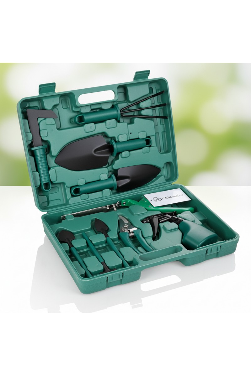 Zestaw zawiera praktyczne narzędzia ogrodnicze, takie jak: