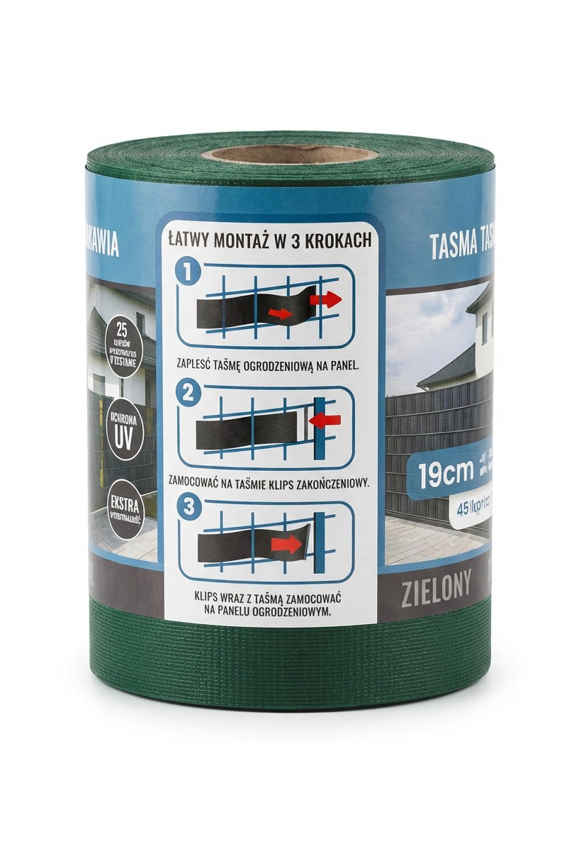 TAŚMA OGRODZENIOWA ZIELONA 19x35 OSŁONA NA OGRODZENIE+UV 25 KLIPSÓW ZIELONA